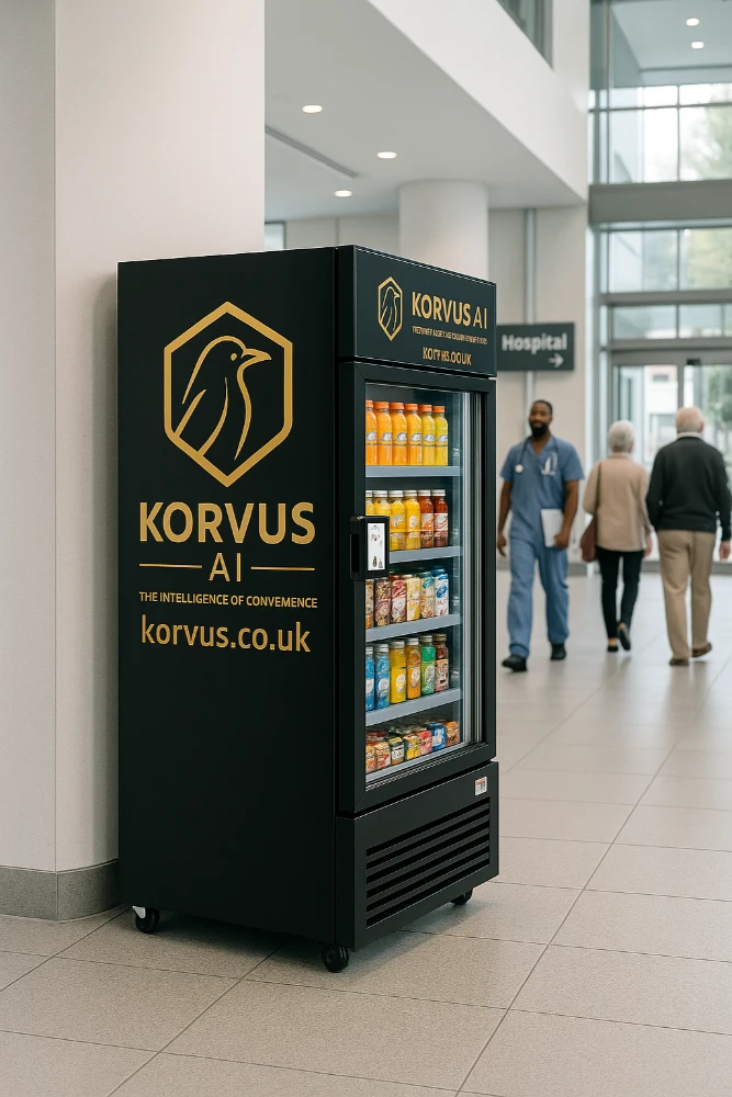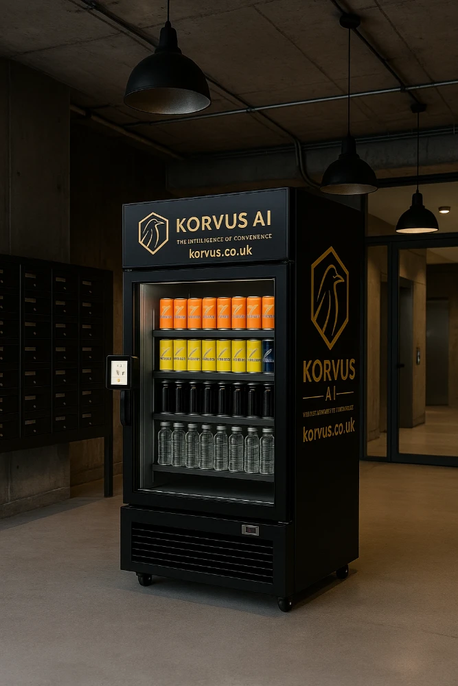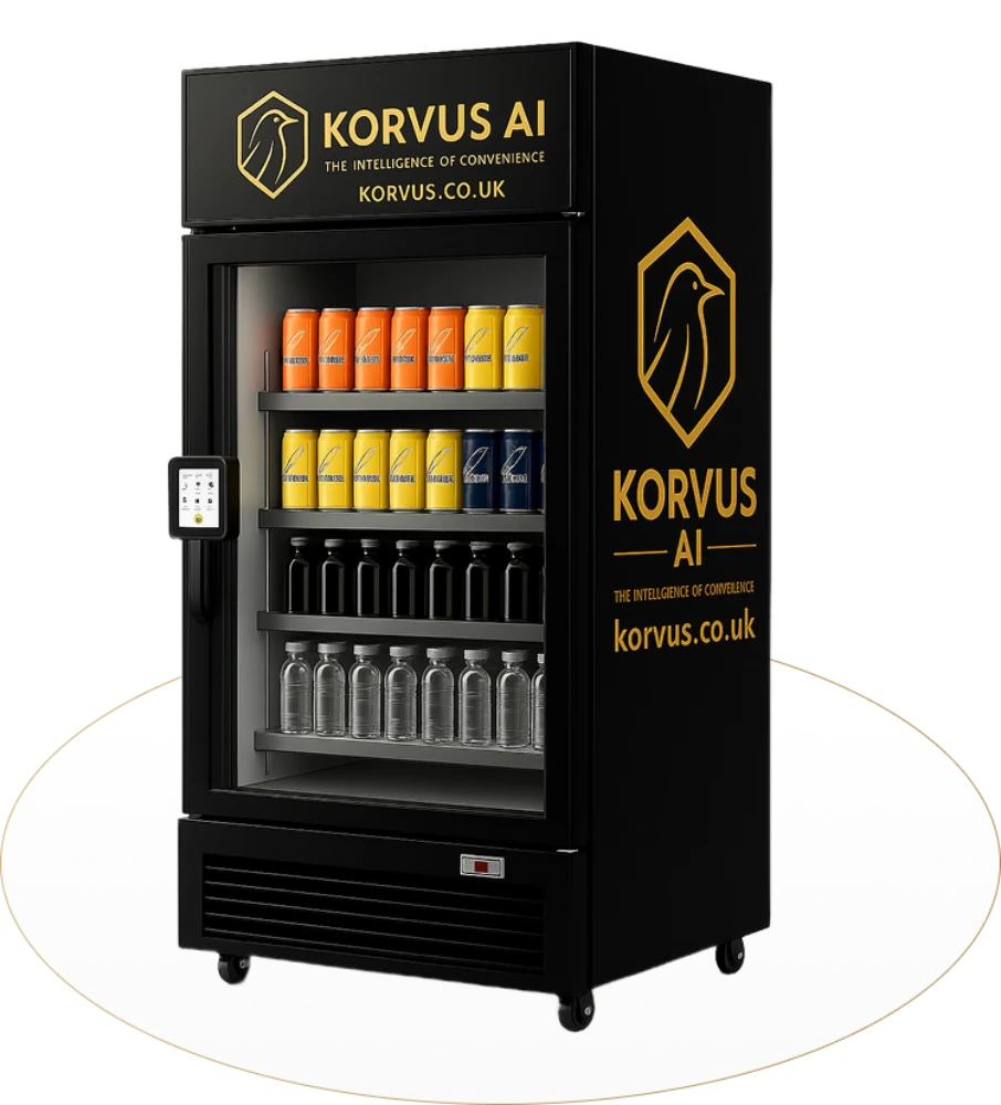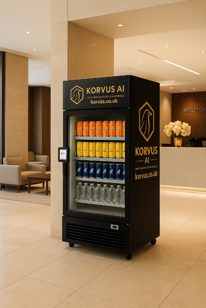 At Korvus AI Ltd, we believe the future of retail is intelligent, contactless, and seamless. Our AI-powered vending systems bring a luxury convenience experience to your environment — without disruption to your operations. Each system blends effortlessly into high-traffic areas, giving customers, guests, and staff instant access to essentials, snacks, and drinks — any time of day.